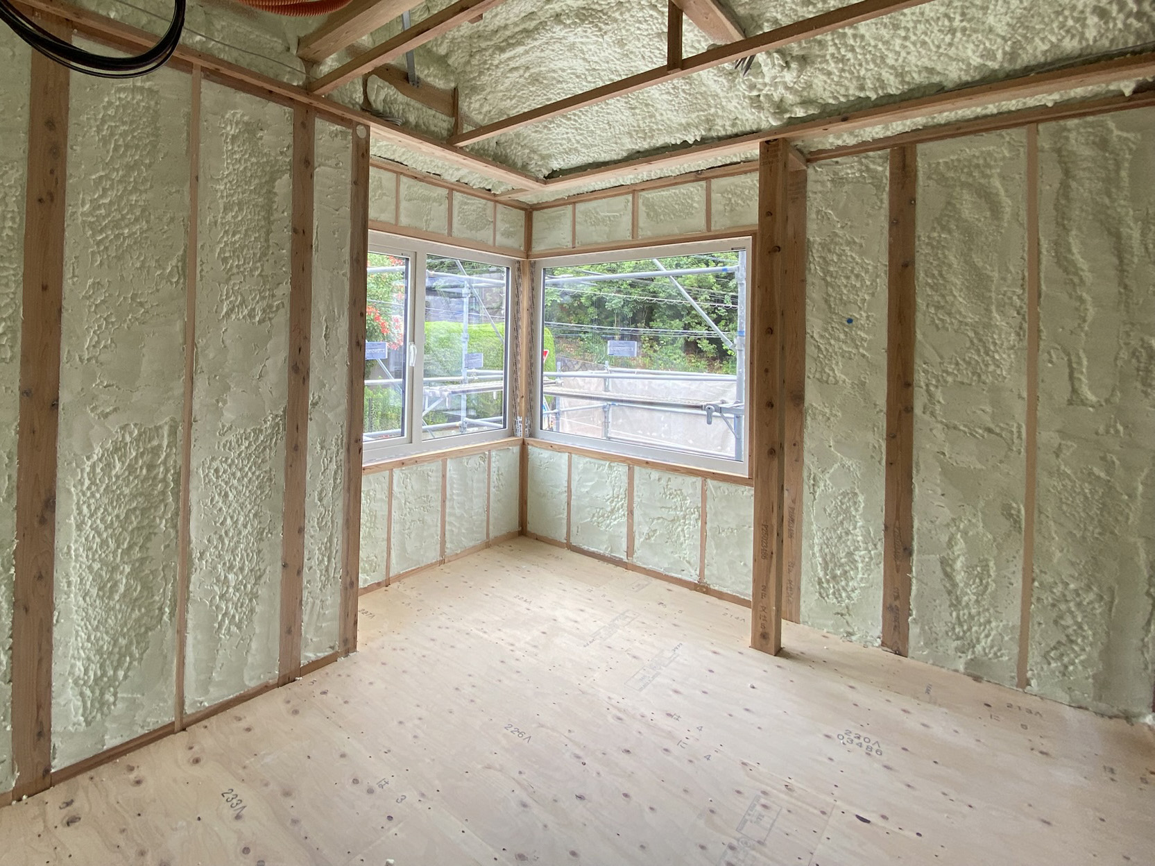 もこもこと断熱材を吹き、