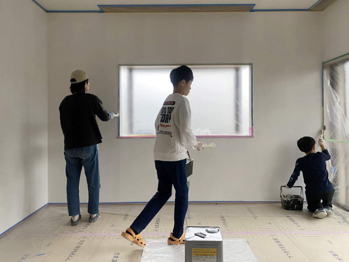 まずは初日、寝室などプライベートルームから塗り始めています。