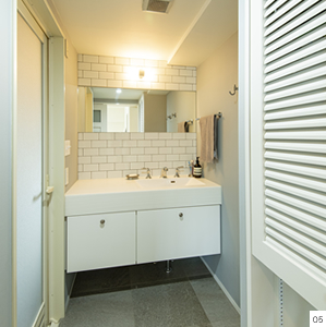 リフォーム済みだったため使える状態のものは生かしつつ、スケルトンにはせずに一部間取りの変更、ドアや棚などの製作、素材の変更、キッチン等の主役になる設備機器の入れ替えなど、使い勝手と印象の調整を行うリノベーションとしました。