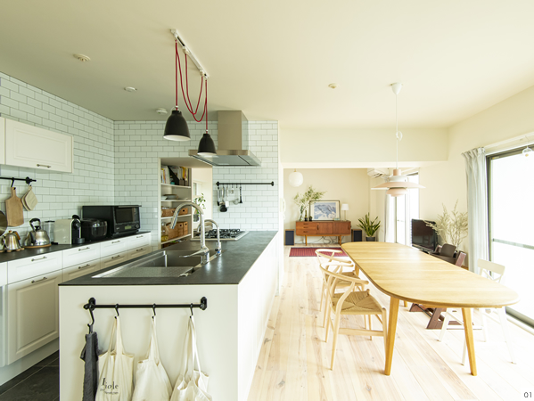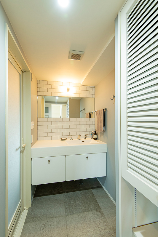 リフォーム済みだったため使える状態のものは生かしつつ、スケルトンにはせずに一部間取りの変更、ドアや棚などの製作、素材の変更、キッチン等の主役になる設備機器の入れ替えなど、使い勝手と印象の調整を行うリノベーションとしました。